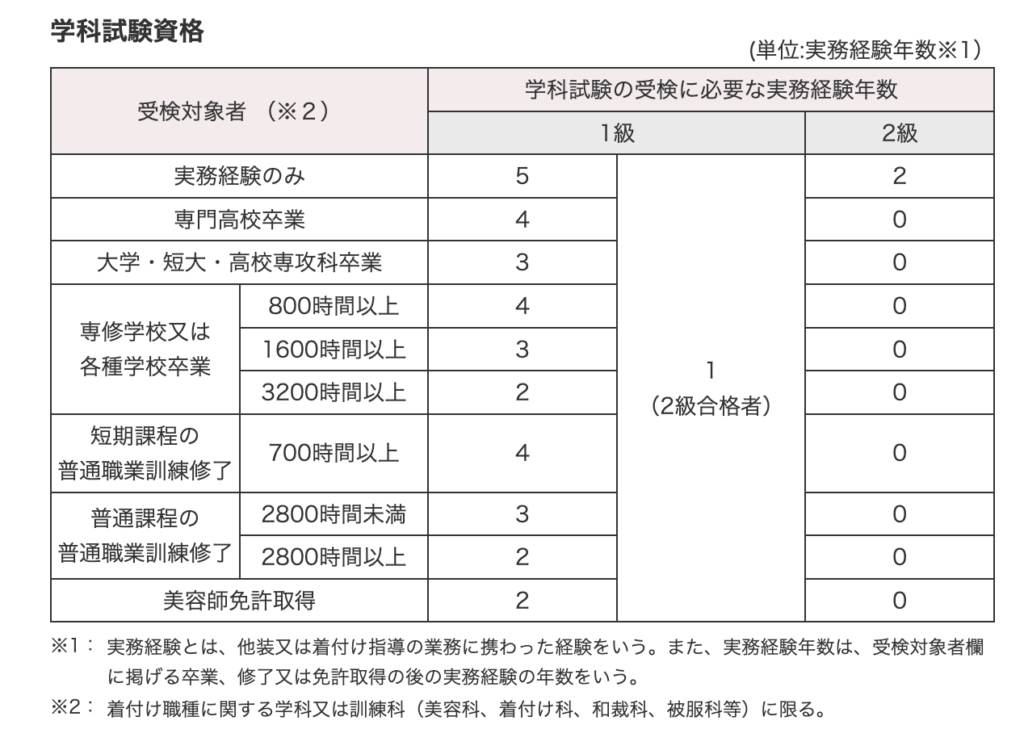 - 1級と2級、学科試験と実技試験、それぞれで受験資格が異なる